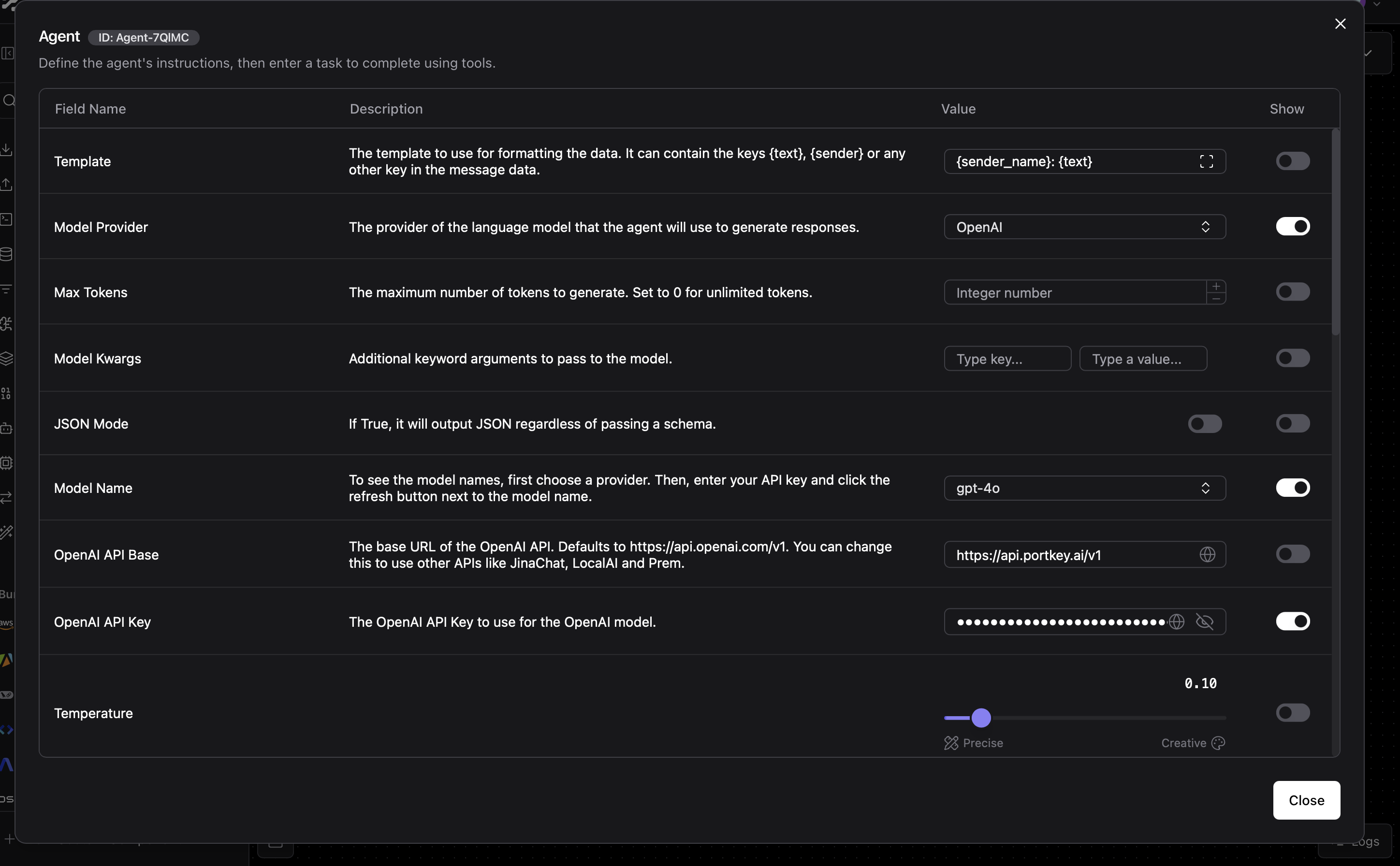 Select your provider (OpenAI, Anthropic, etc.), enter your API key, and create a slug like